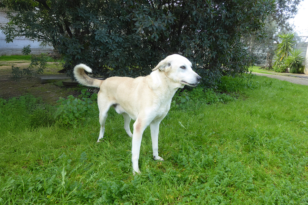 Biancol è un cane sensibile, con una leggera diffidenza che sembra avere radici genetiche più che esperienziali. Nonostante questo, si avvicina volentieri, cerca il contatto fisico e apprezza la presenza dell’essere umano.