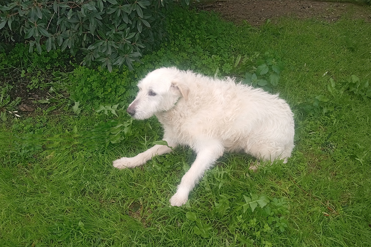 Murro è un mix Fonnese, con tutte le caratteristiche tipiche dei cani da guardiania: diffidente per natura, attento e molto rispettoso degli spazi. Nonostante ciò, si presenta riflessivo e curioso, e mostra segnali chiari di apertura e disponibilità al contatto con l’essere umano, se trattato con calma e pazienza.