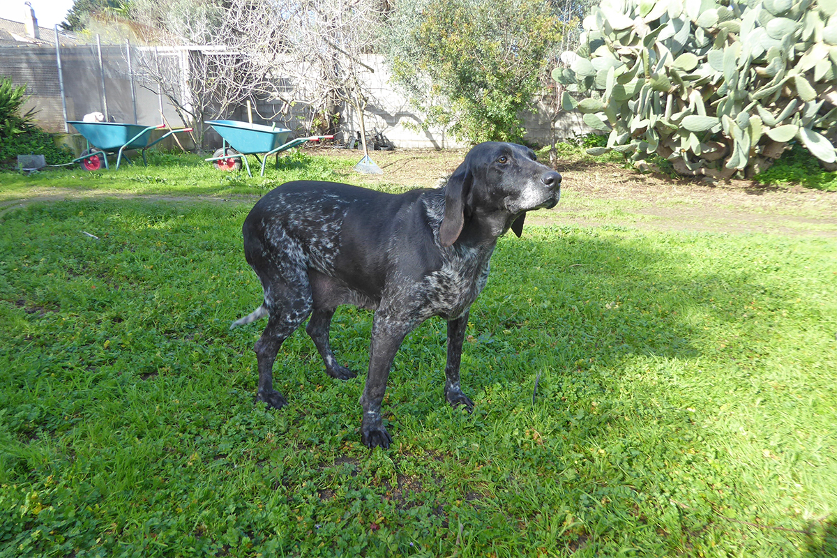 Tanca è un bellissimo Bracco Italiano di 9 anni, sensibile e socievole. All’inizio può mostrare una leggera diffidenza, ma bastano pochi istanti perché si apra e mostri tutto il suo affetto e la sua gioia di vivere .