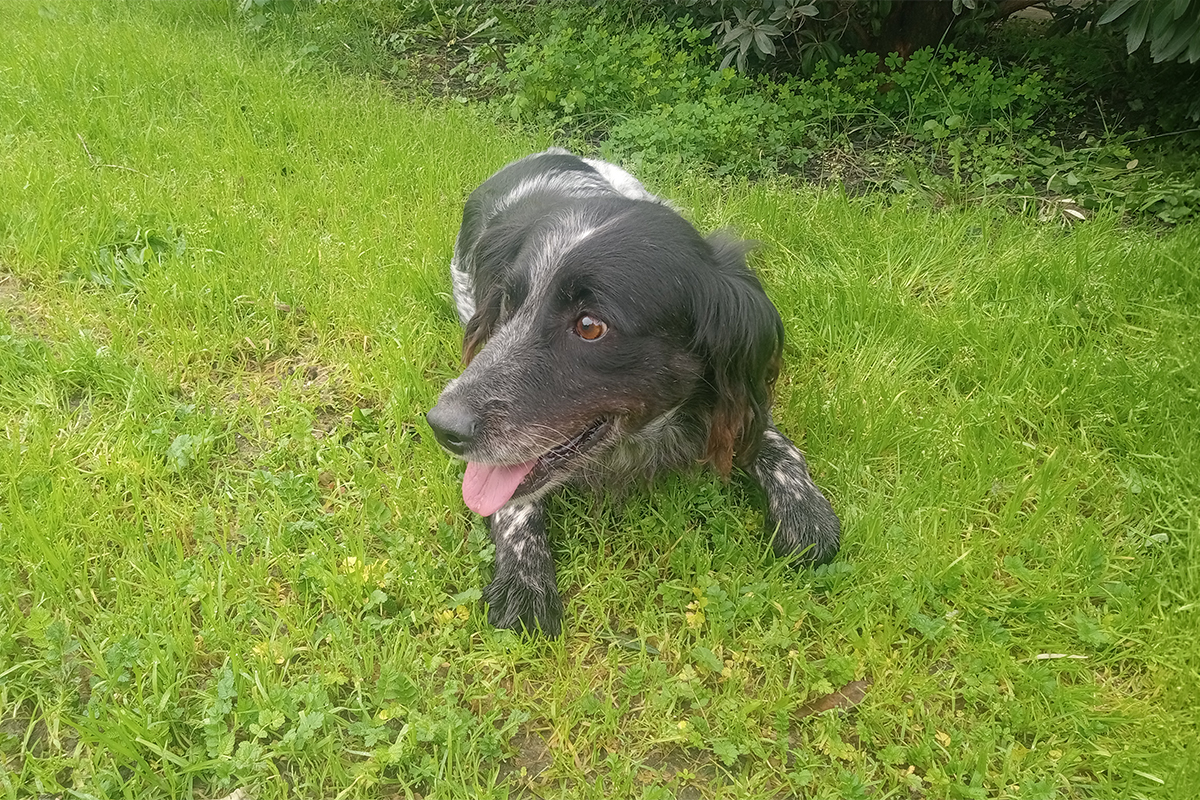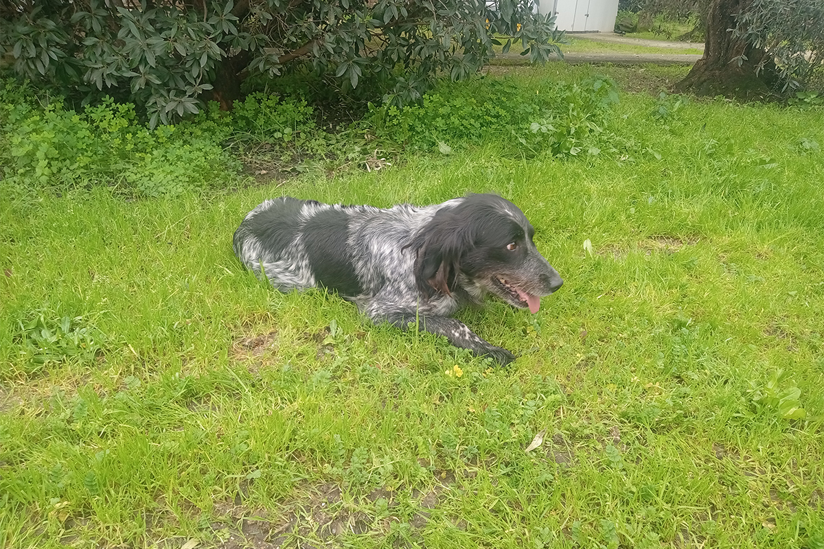 Tempesta è una bella femmina scura, un mix Breton dal carattere delicato. All’inizio mostra diffidenza e tende a evitare il contatto, ma con tempo e pazienza può aprirsi molto. Come buon Breton e cane da caccia, è molto sensibile e ha bisogno di sentirsi al sicuro per fidarsi davvero.